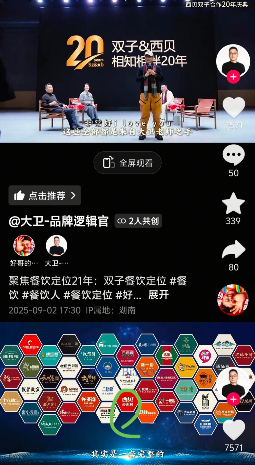 据樊大卫发布的视频来看,他曾参与西贝、旺顺阁鱼头泡饼等餐饮品牌的广告营销,西贝创始人贾国龙还参加了“西贝双子合作20年庆典”活动。