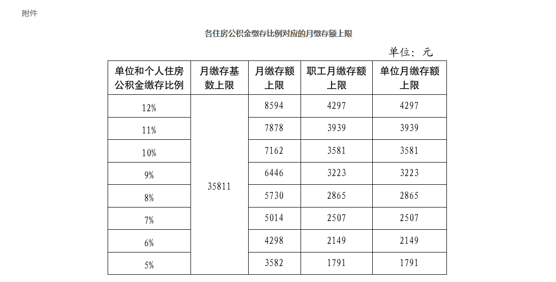 2025住房公积金年度住房公积金月缴存基数上限为35811元,具体缴存比例对应月缴存额上限见附件;自2025年9月1日起,住房公积金月缴存基数下限调整为2540元,领取基本生活费职工的月缴存基数下限为1778元,新受理的住房公积金个人住房贷款,计算借款申请人贷款金额所使用的月基本生活费标准按1778元执行。